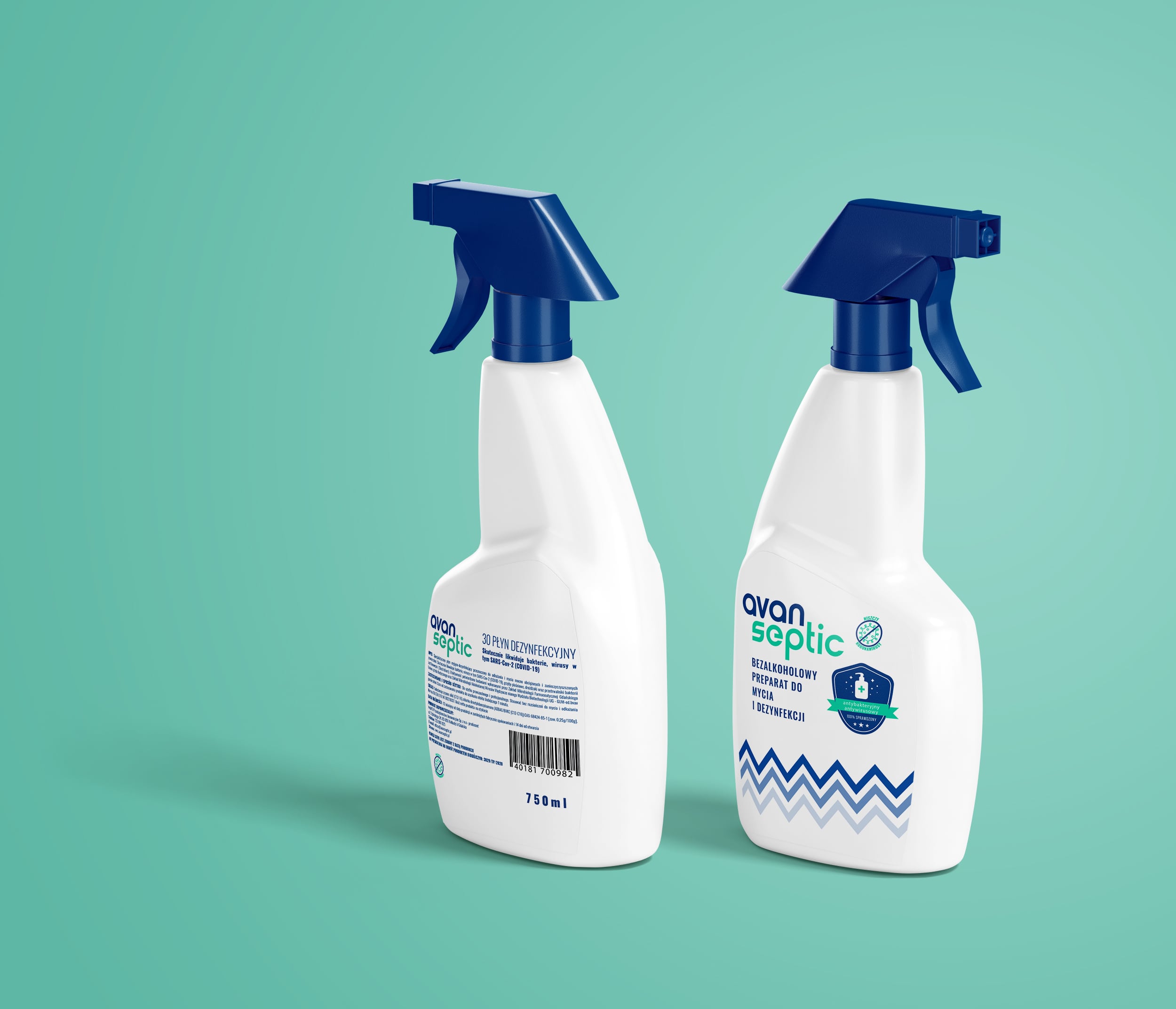 Branding opracowany z myślą emanowania zaufania i jakości marki w kategorii środków czystości o zastosowaniu specjalnym. Całość wykonana minimalistycznie z przewagą czystej bieli w każdej wariacji opakowania.