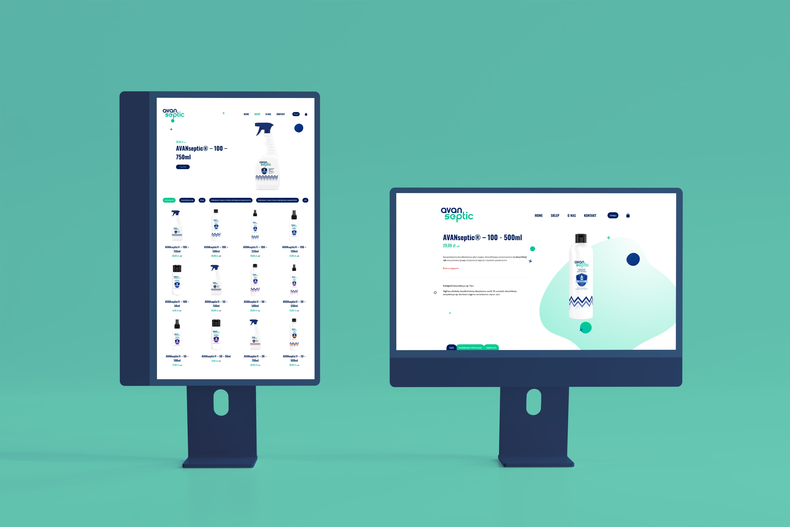 Platforma sprzedażowa wraz z pełną identyfikacją marki oraz zaprojektowaniem produktów wykonaną dla firmy specjalizującej się w bezalkoholowych preparatach do mycia i dezynfekcji.