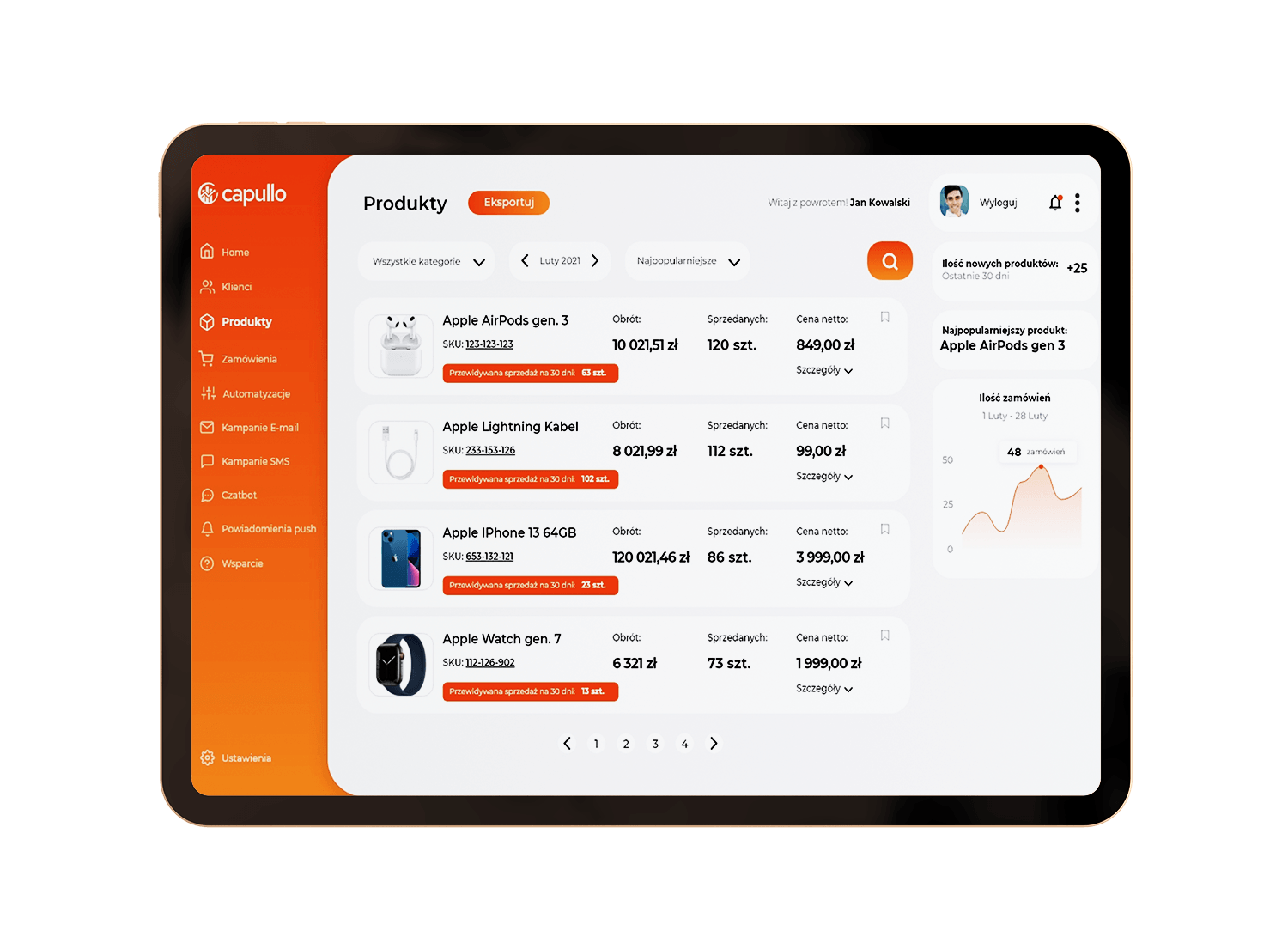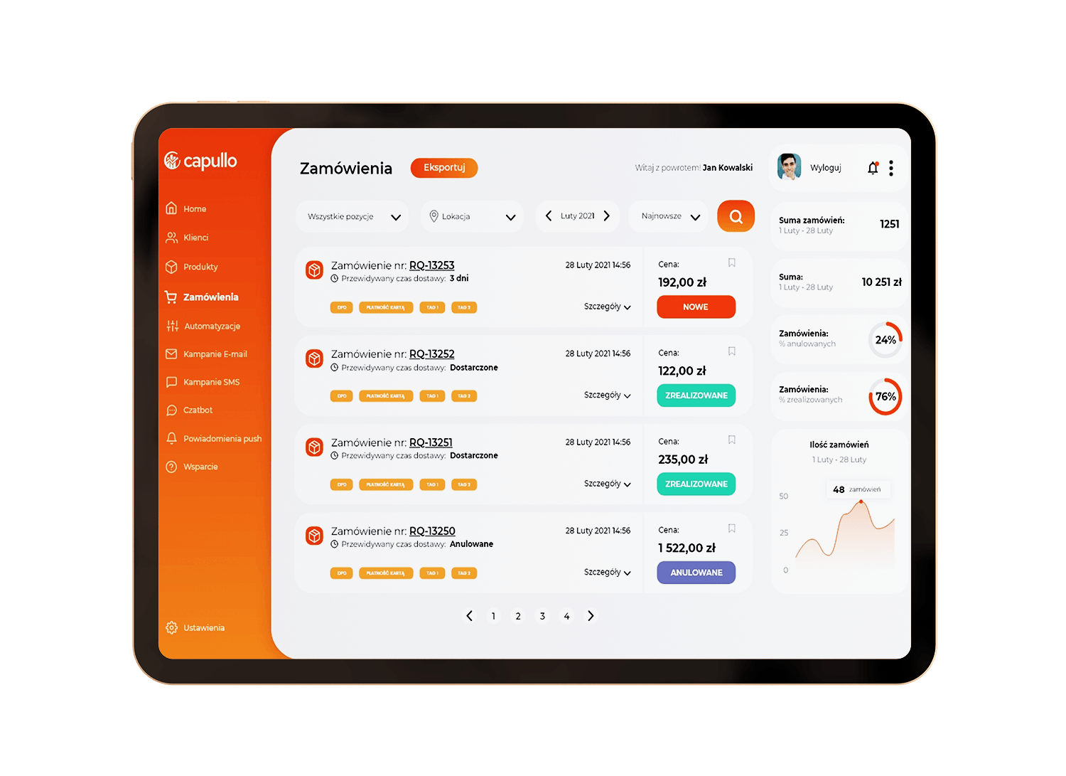 • Analiza historii zamówień