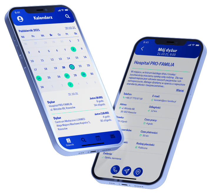 Projekt aplikacji dla MB AI z.o.o. przeznaczonej do zapisu jaki zarządzania dyżurami medycznymi. Jedno środkowisko w dwóch wydaniach: dla personelu medycznego oraz dla instytucji medycznych.